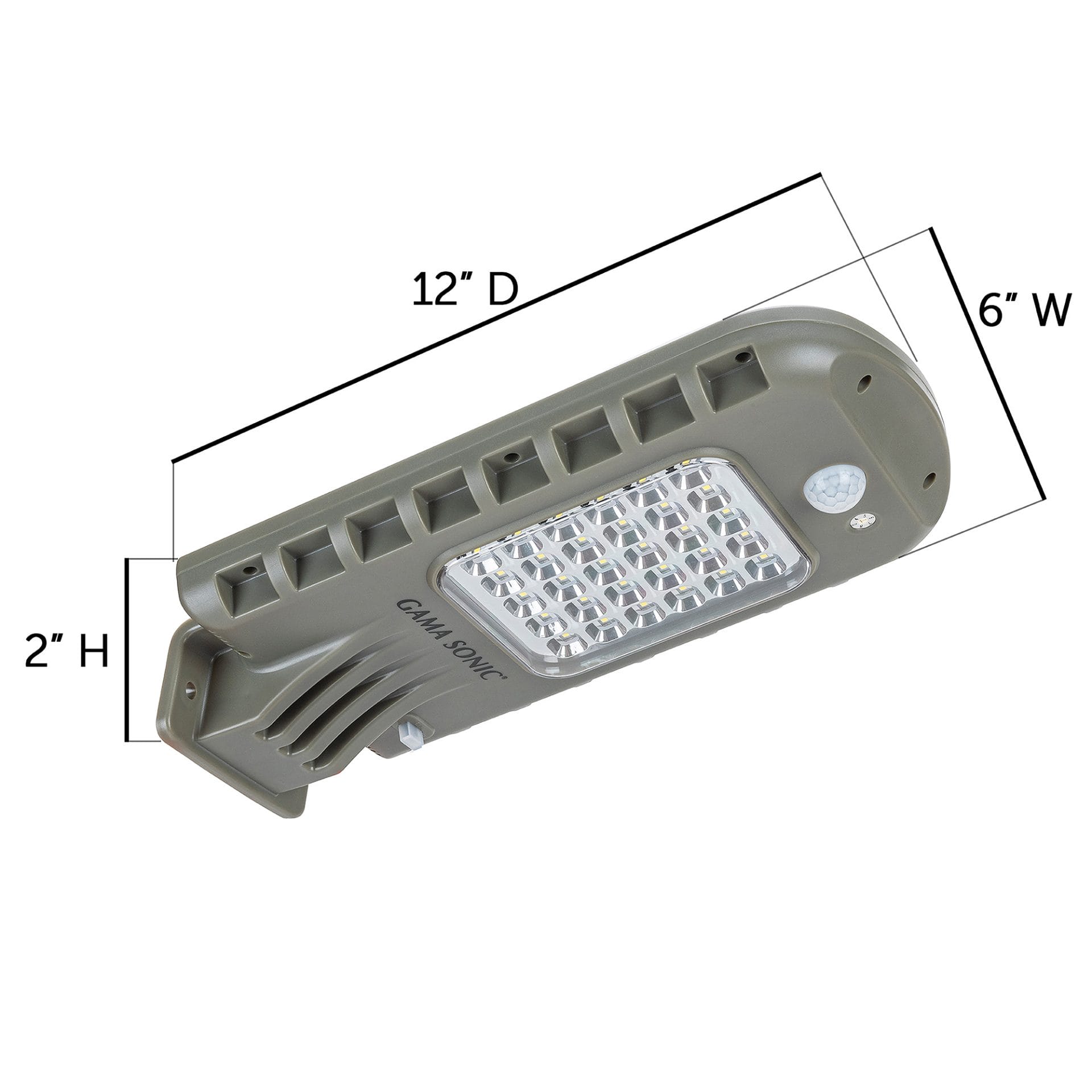 The 6W Solar Area Light with 810 lumen output is a cost and energy efficient lighting solution intended to brightly illuminate the exterior of any warehouse facility, storage unit, pedestrian passage area and camping site. Designed with an integrated motion sensor, this outdoor solar powered area light can be mounted easily onto the side of a wall or secured to a 2 in. to 3 in. pole. This light features a timer that can be set to 4-hours, 5-hours, 6-hours, 7-hours, 8-hours or dusk to dawn operation. This area light is constructed of rigid resin and designed with 2 modes of operation. In ON mode, this light will illuminate with 270 Lumens for 4-hours. After 4-hours, the brightness will reduce to 135 Lumens until motion is detected. Once motion is detected, the brightness will increase to 270 Lumens. In PIR mode this LED Solar Area Light will illuminate at 810 Lumens for up to 100 cycles per night for 60-second intervals when motion is detected within the 140 detection zone. Both modes of operation feature a bright white color temperature (6000K) Our outdoor solar security light sports a clean compact look with an integrated solar panel and 30 bright LEDs. Featuring outdoor weatherproof IP65 enclosure, this solar light requires no electrical hardwiring to operate. Just place it in a spot with ample direct sunshine and let the Sun do the rest.
