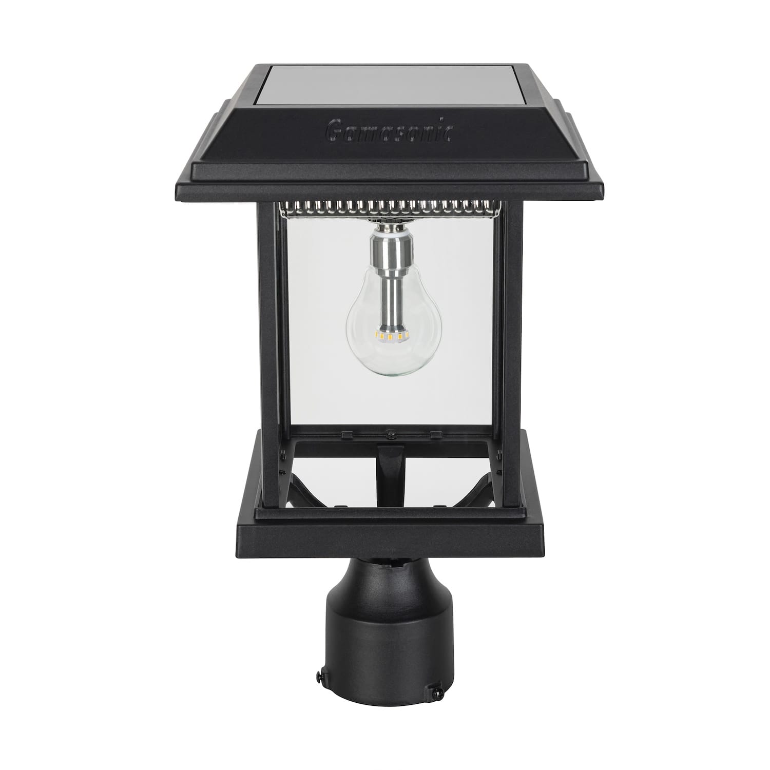 Illuminate your outdoor spaces with the Gama Sonic Aspen II Solar Post Light, a stylish solar-powered LED fixture designed for performance and durability. Delivering 250 lumens of warm white light through crystal-clear glass panes, the Aspen II enhances driveways, walkways, gardens, and entryways with timeless charm. This modern post light features automatic dusk-to-dawn operation, weather-resistant construction, and a universal 3-inch fitter for easy installation—no wiring or maintenance required.