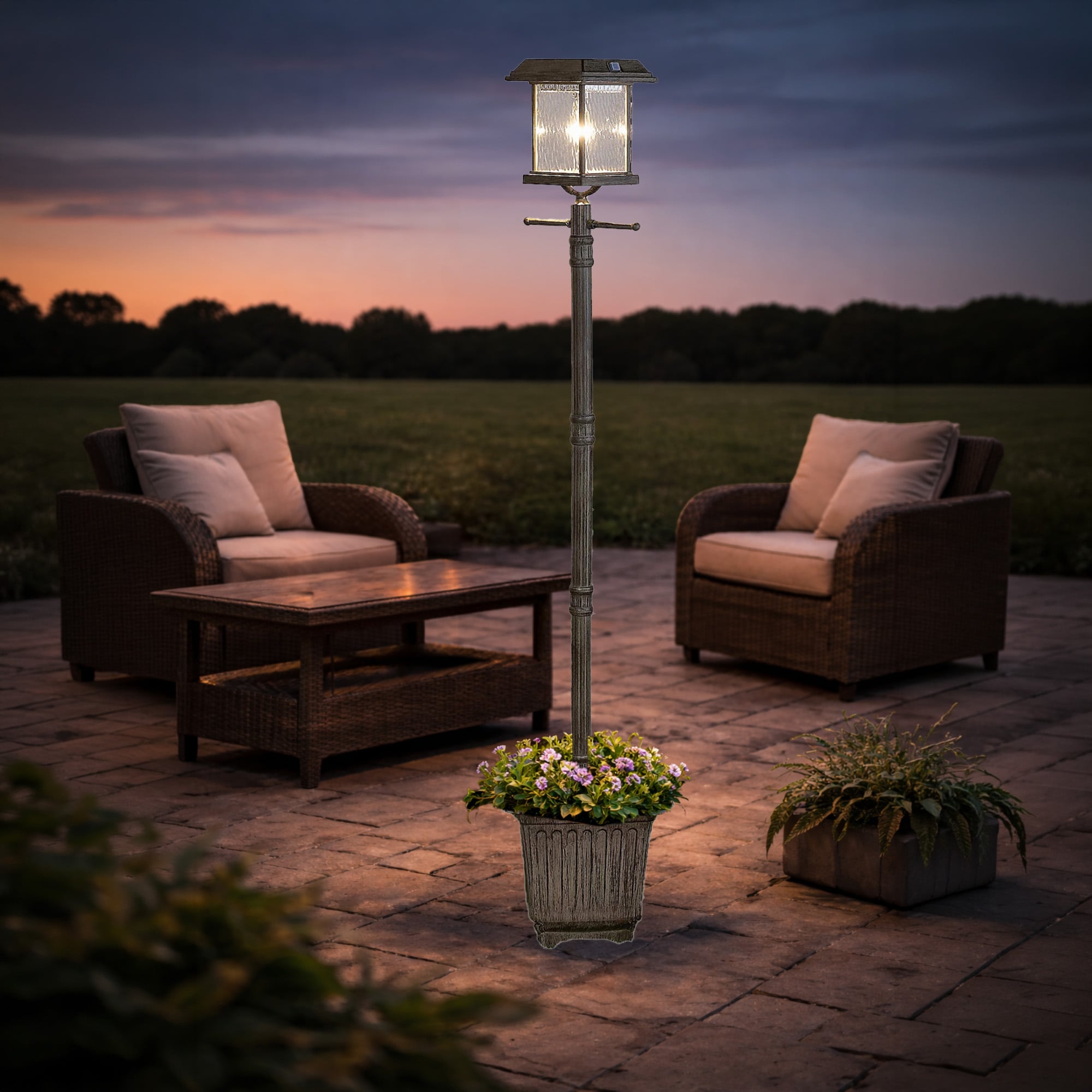 Aspen Solar Lamp Post with Planter & EZ Anchor
