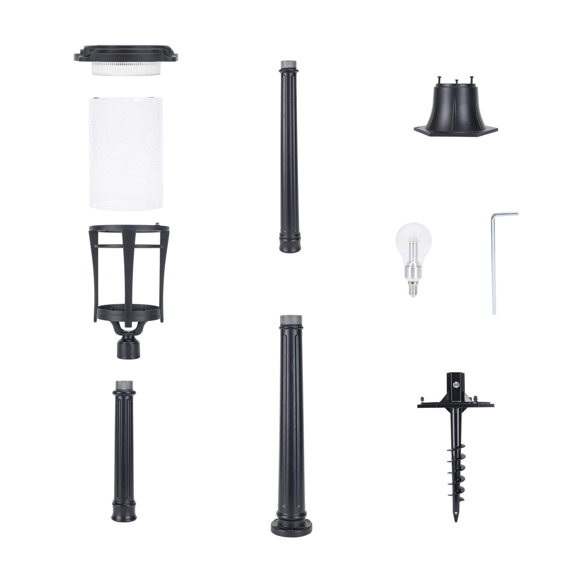 Enhance your outdoor retreat with the Gama Sonic Aurora Solar Lamp Post with EZ Anchor. This solar light fixture offers a black finish with a warm-white 2700K bulb is the perfect energy-saving and money-saving replacement for electric or gas-powered outdoor lighting. This rust-resistant cast-aluminum solar light features an attractive, contemporary design with a powder-coated black finish and a bubble-glass insert. Our Solar light fixture comes with all necessary hardware for mounting the post with the EZ-Anchor. No wiring is needed. The sturdy outdoor post is made from cast-aluminum with a powder-coated semi gloss black finish. It features attractive vertical grooves that is sure to add distinction and charm wherever it is installed. The lamp post has an 9.5 in. Dia base and tapers to support a light fixture with fitter mount. The EZ Anchor is an in-ground mounting kit specifically designed for Gama Sonics single head lamp posts only. This mounting kit allows you to mount and secure the solar lamp post into the ground and eliminates the process of digging or pouring concrete. A built-in level on the anchor base helps ensure a straight, secure installation.