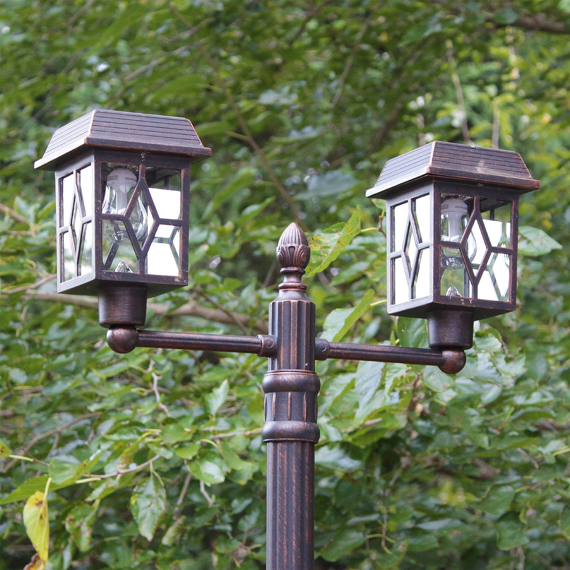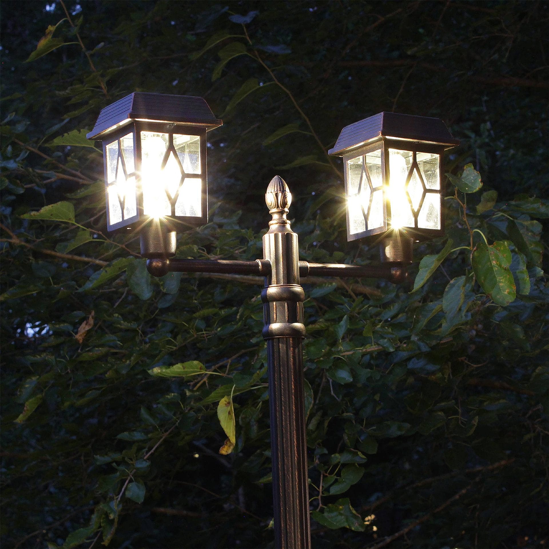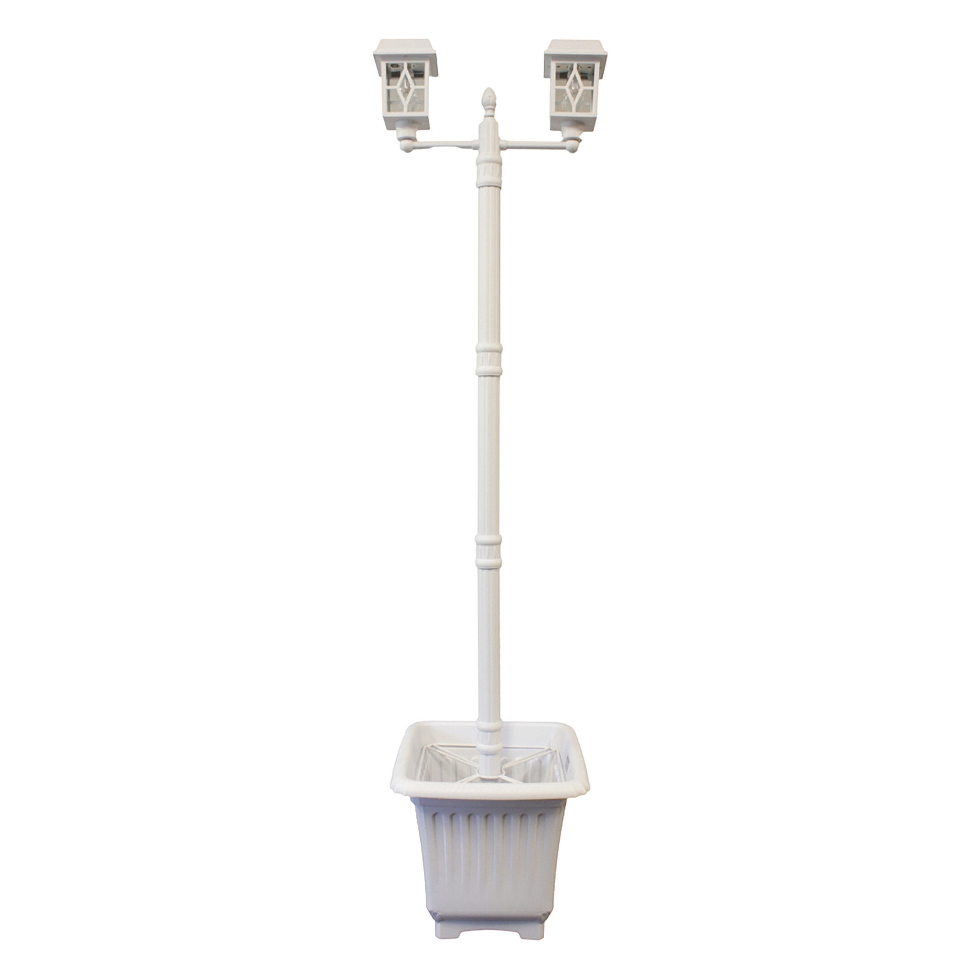 Durable Construction: Weather-resistant and rust-resistant resin post and planter, paired with a robust cast aluminum dual-head solar lamp, ensures long-lasting durability in any climate
