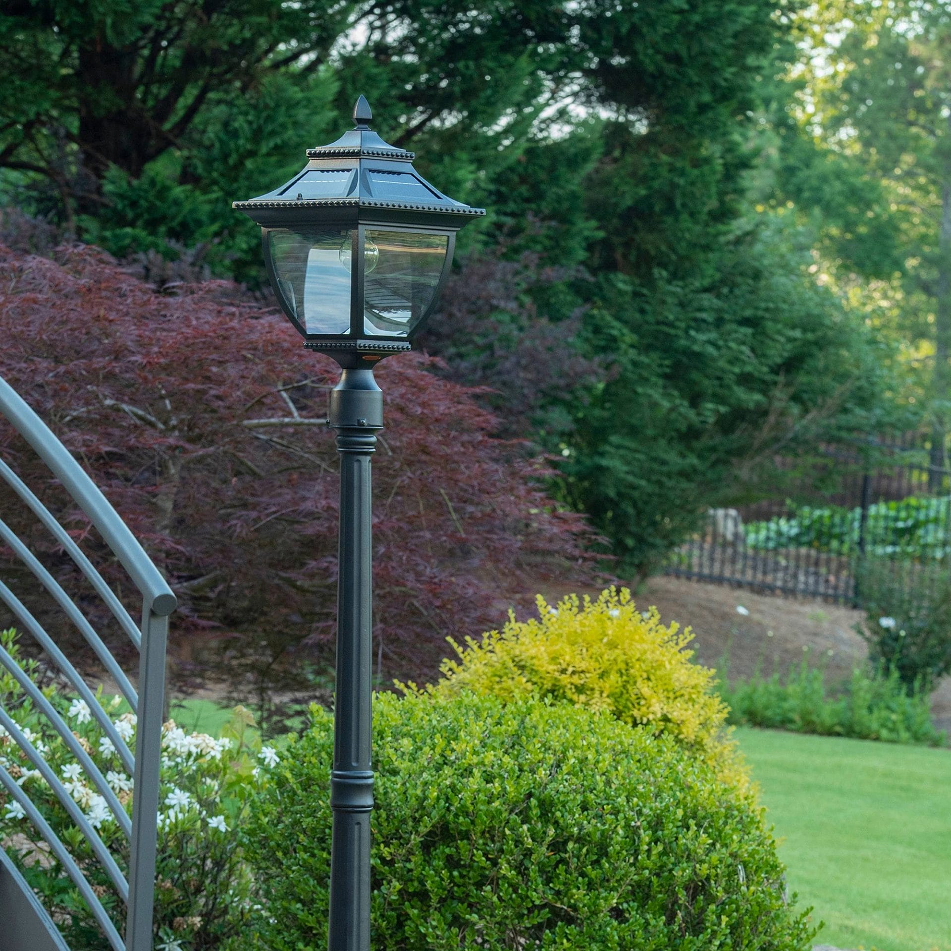Inspired by East Asian architecture, the Pagoda Bulb Solar Lamp Post will add a touch of elegance to any outdoor area. Our improved model features larger trapezoid solar panels, now delivering 80% more charging power for extended illumination. Experience enhanced efficiency and longer-lasting solar lighting with our latest design. With a powder-coated finish that prevents chipping, cracking, and corrosion, the Asian-inspired outdoor lamp will keep your surroundings well-lit for years to come. Installation takes little to no effort. Simply assemble the fixture in an area where it can absorb optimum sunlight during the day, and let solar power do the rest. The lithium-ion battery pack will charge as the solar panel absorbs the sun’s rays during the day, and at night the LEDs will automatically activate. When it comes to your outdoor lighting solutions, you will never have to worry about an electric bill again. Choose the Pagoda design solar fixture as your environmentally friendly alternative to electrical lamp posts. Resembling East Asian architecture, the solar lantern Pagoda style adds elegance to sidewalks and walkways. The unique style complements a variety of landscapes, including neighborhoods, parks, downtown areas, and more. Fully solar powered, the solar pagoda garden lamp offers an