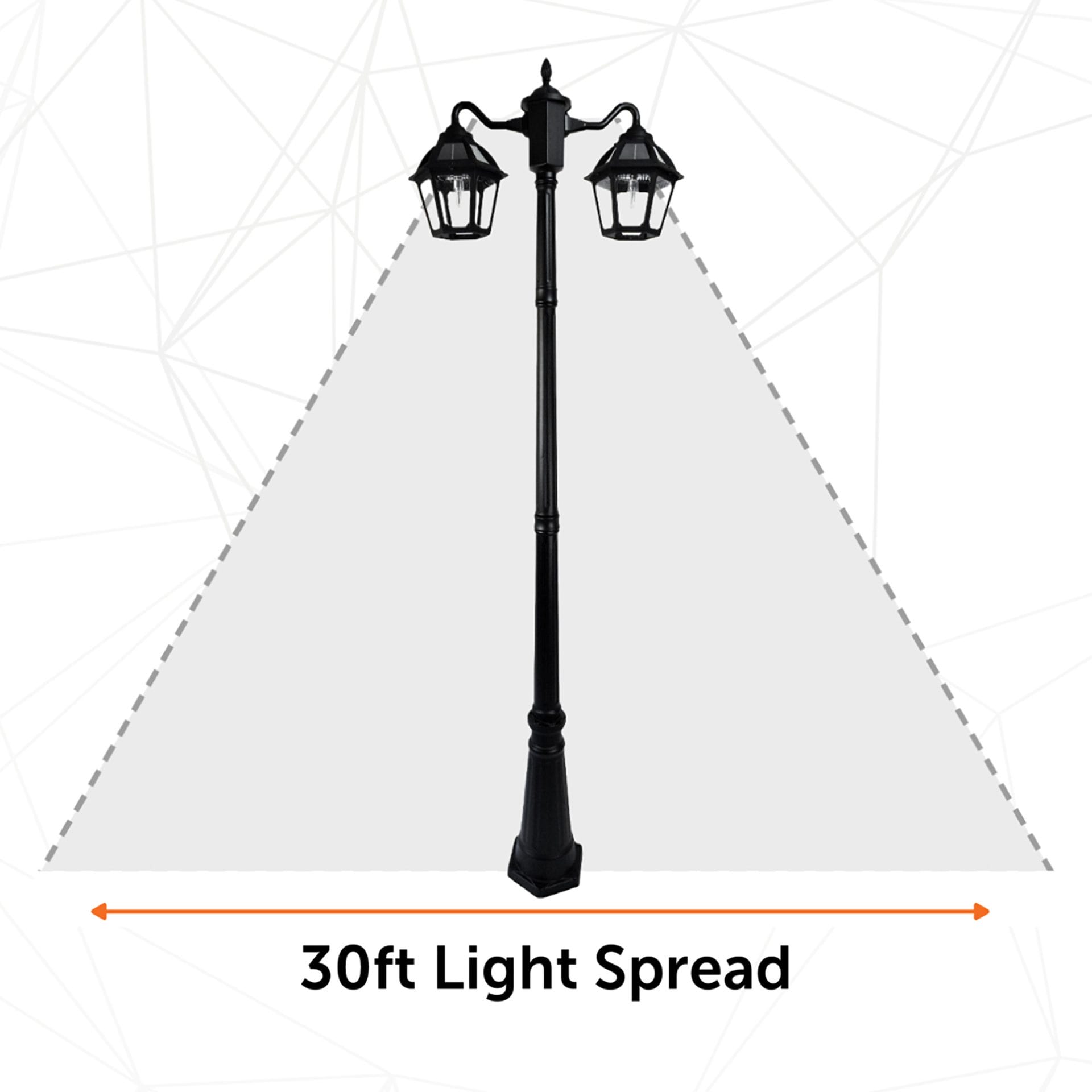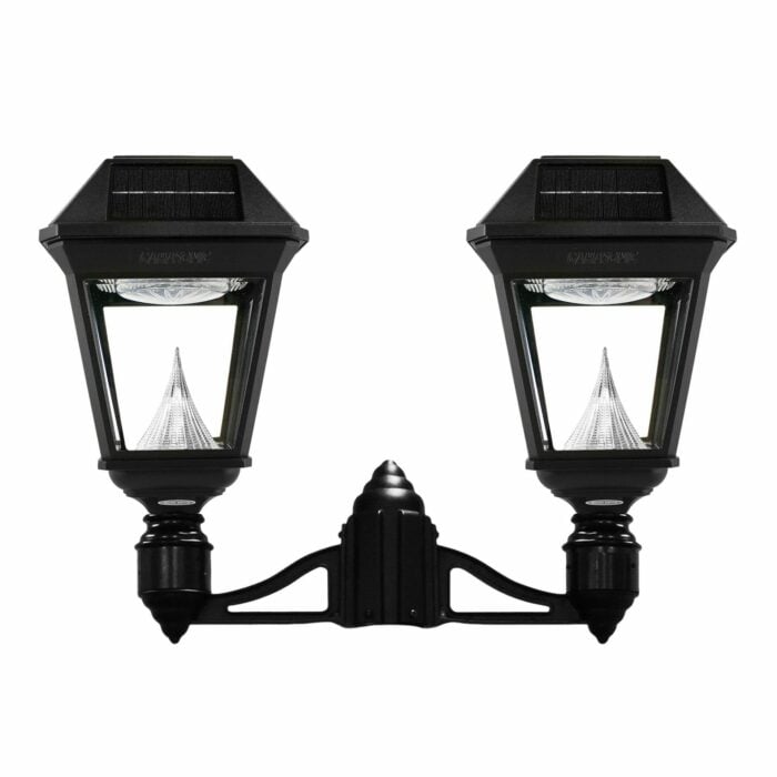 The Gama Sonic Polaris Solar is a double headed solar lamp post features a modern look with an urban industrial twist.