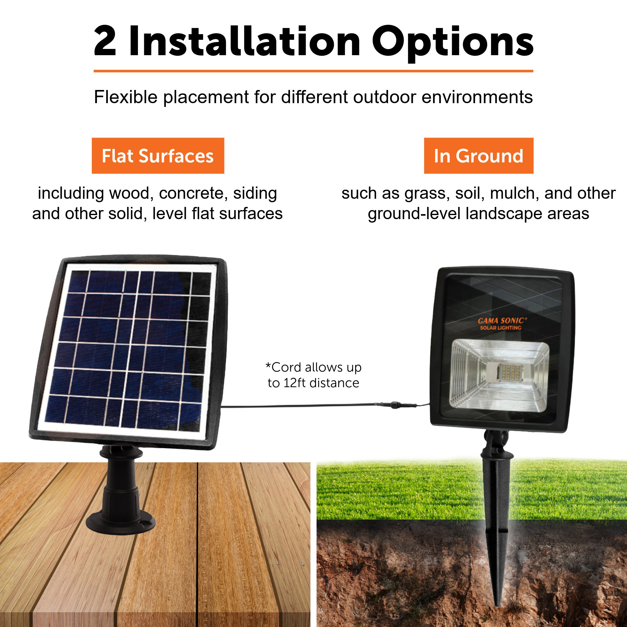 For maximum placement flexibility, the cord allows the solar panel to be installed up to 12 feet away from the light fixture, ensuring optimal sun exposure even when the fixture itself is positioned in shaded or partially obstructed areas.