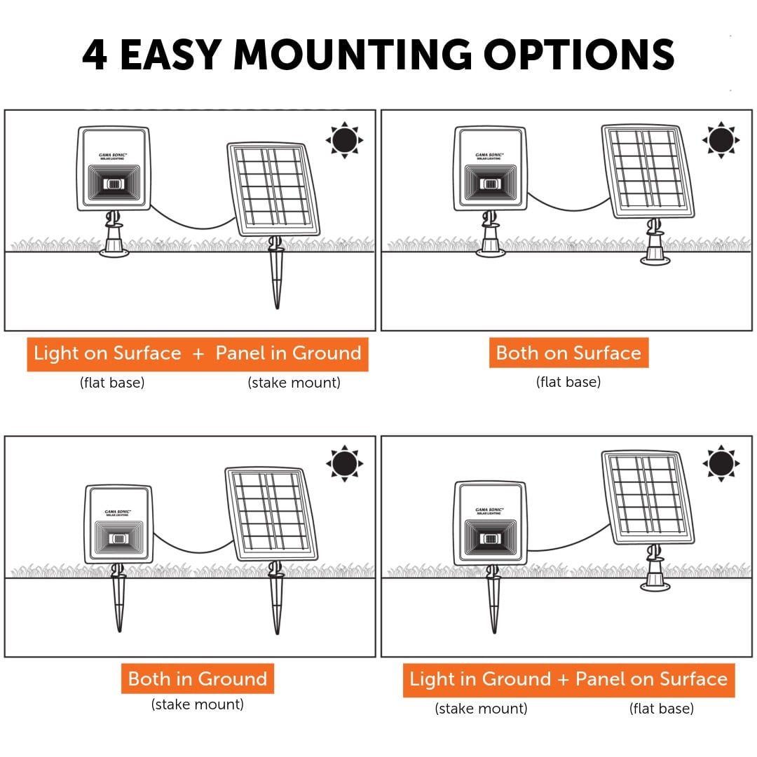The Gama Sonic Pro Dual Solar Flood Light is designed for projects that require powerful illumination, long-term durability, and flexible installation. Producing up to 500 lumens, this outdoor landscape light is ideal for illuminating commercial landscapes, neighborhood and HOA entrances, signage, monuments, flagpoles, pathways, and architectural features where consistent, high-output lighting is essential.