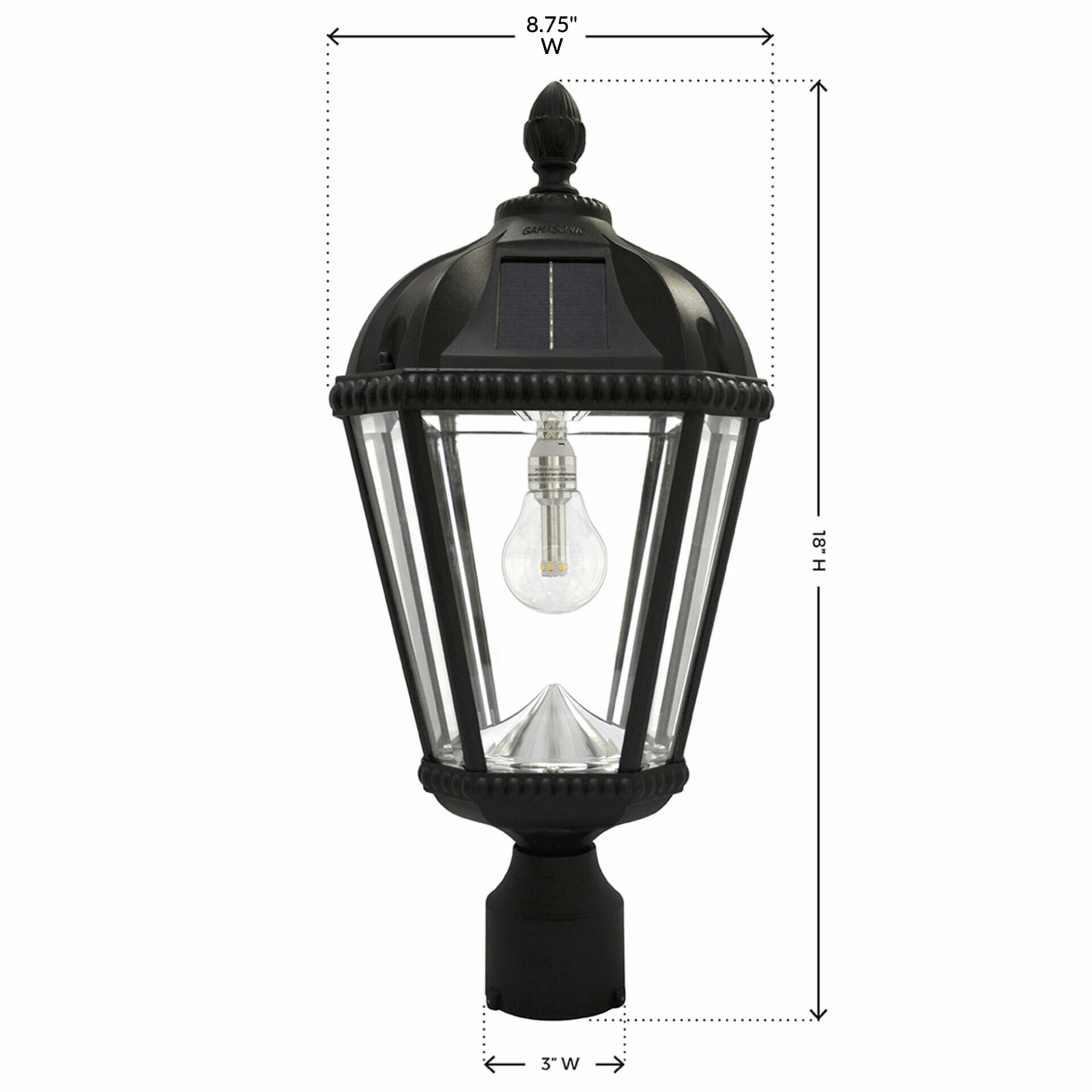 Royal Bulb Solar Post Light with Patented Solar Light Bulb – 3″ Fitter