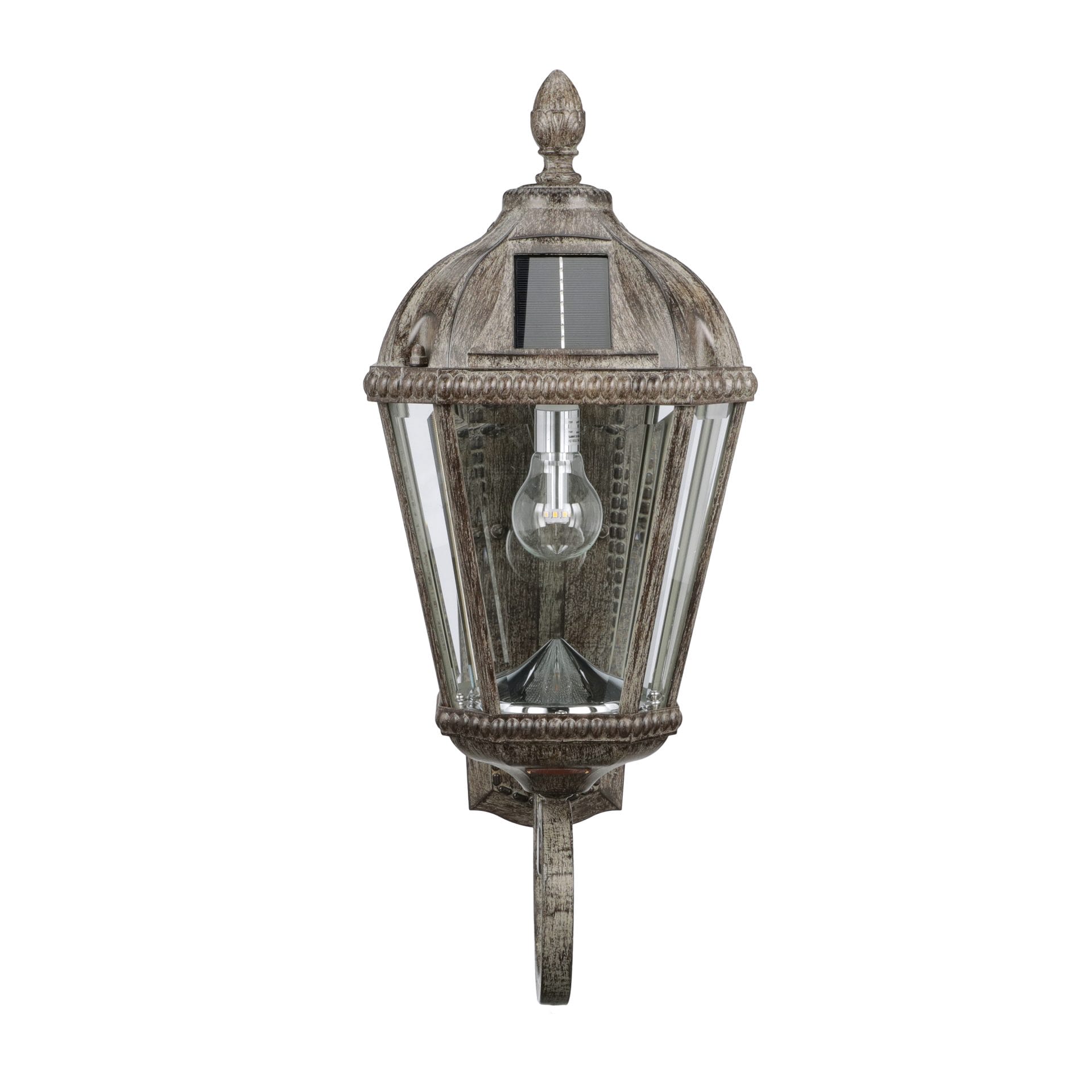The Gama Sonic Royal Bulb is a single head solar lamp for a wall mount application that features an attractive design inspired by New Orleans architecture. Installation takes minutes and comes with all necessary hardware needed for mounting this unit. Stylish and easy to install, this fixture is the perfect energy and money saving replacement for electric or gas-powered outdoor lighting. The Royal Bulb solar wall lamp is constructed of weather-resistant, rust- resistant cast aluminum with a powder-coated finish and beveled glass panes. This outdoor solar wall lamp incorporates our cutting-edge GS solar LED light bulb technology and provides 360-degree illumination. At dusk, the solar lamp provides a brightness of 150 lumens in a warm white (2700K) color temperature for up to 2 nights on a full charge. No wiring is needed. Just place this solar light in a spot with ample direct sunshine and let the sun do the rest.