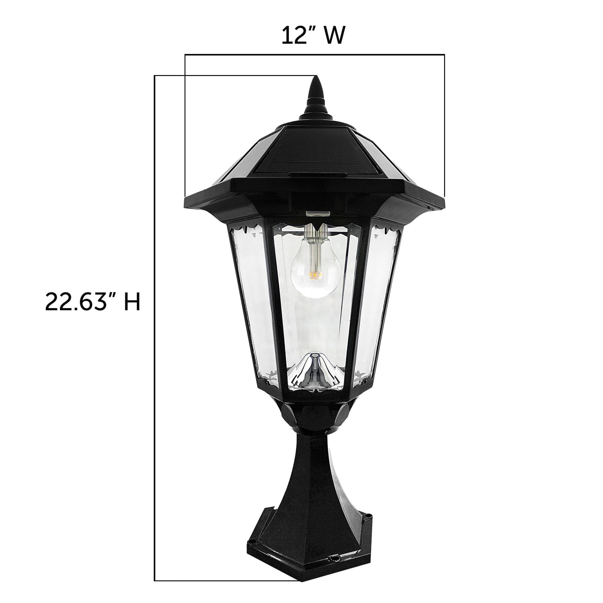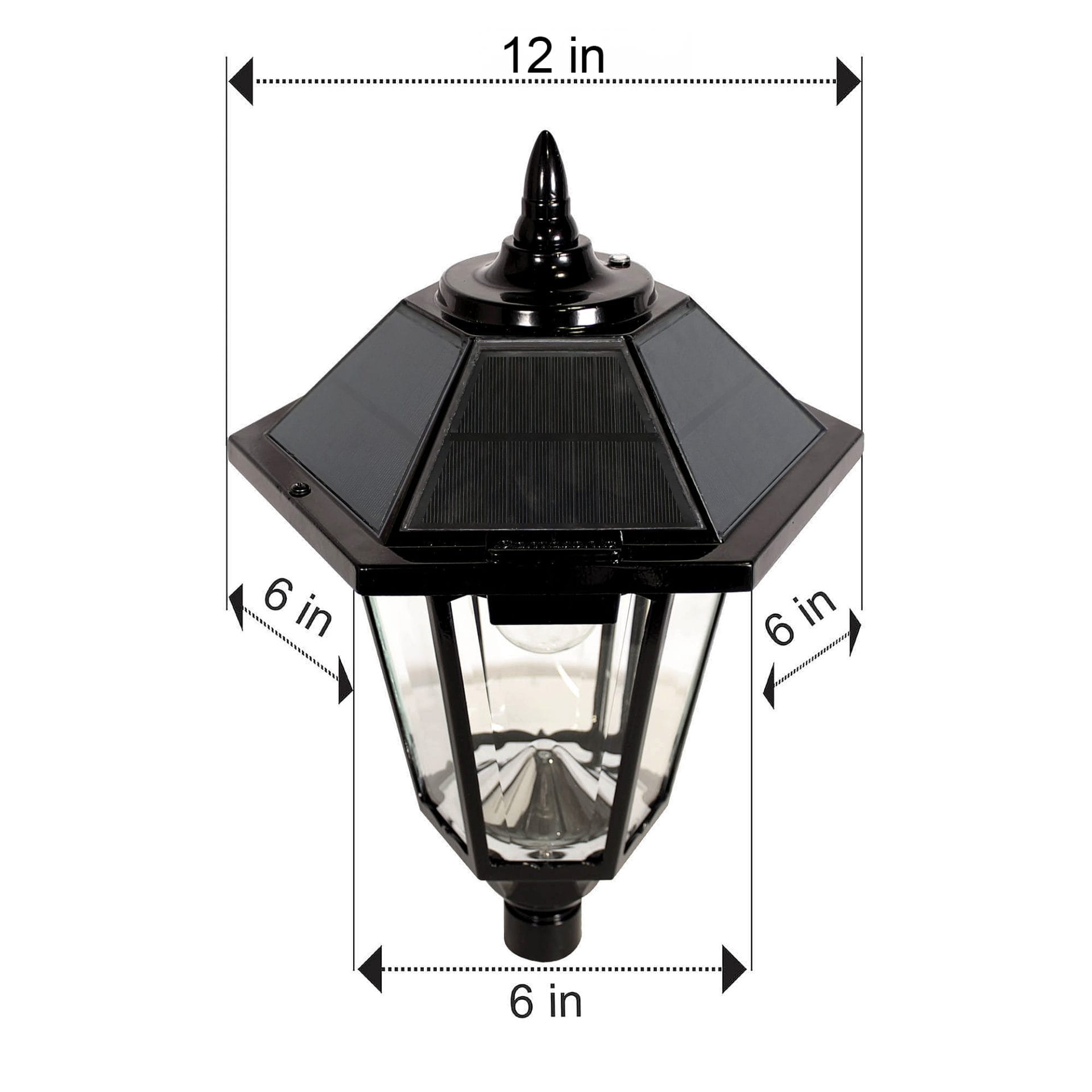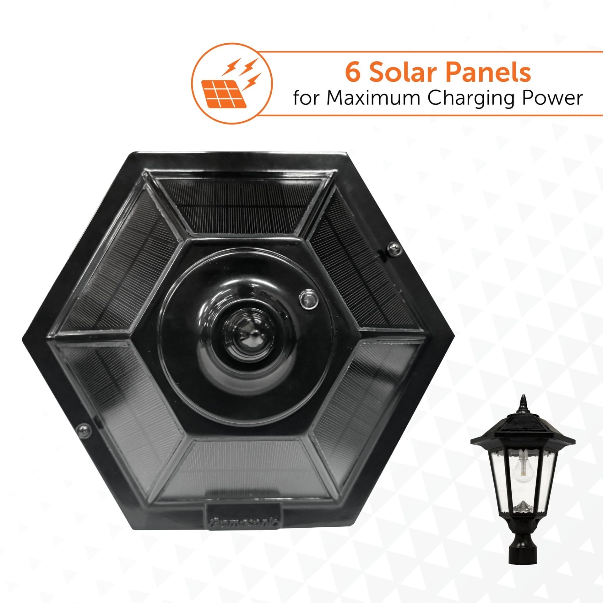 This traditional solar light design enhances the ambiance of patios, decks, garden pathways, driveways, front yards, and entryways, this solar light provides an elegant and sustainable way to illuminate your outdoor areas while complementing various architectural styles. This decorative solar lamp combines elegance and functionality with its durable weather-resistant, rust-resistant black cast aluminum frame ensuring durability for tough weather conditions through all seasons. The new and improved classic black solar light is equipped with Gama Sonic’s advanced Morph Solar Panel Technology, meaning larger, integrated solar panels that capture more sunlight for increased efficiency, brightness, and longer runtime.
