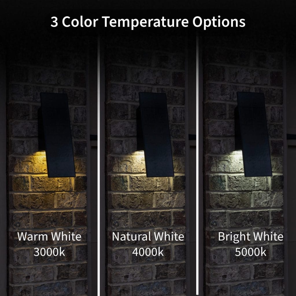 The modern outdoor solar wall light casts a downward beam of light that’s both functional and atmospheric—ideal for highlighting front doors, creating energy-efficient wall lighting for garden walls, or illuminating outdoor staircases. With adjustable brightness and three color temperature settings (Warm White, Natural White, and Bright White), you can customize the ambiance to fit your mood or event. Built with black cast aluminum and rated IP65 for durability, this fixture offers up to 200 lumens and can run for two full nights on a single charge. Thanks to its tool-free solar light installation, enhancing your outdoor walls has never been easier.