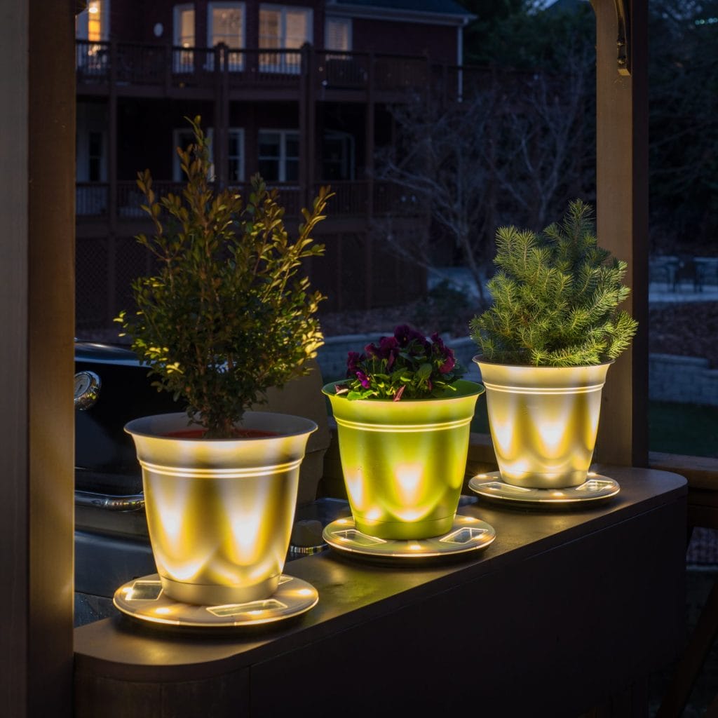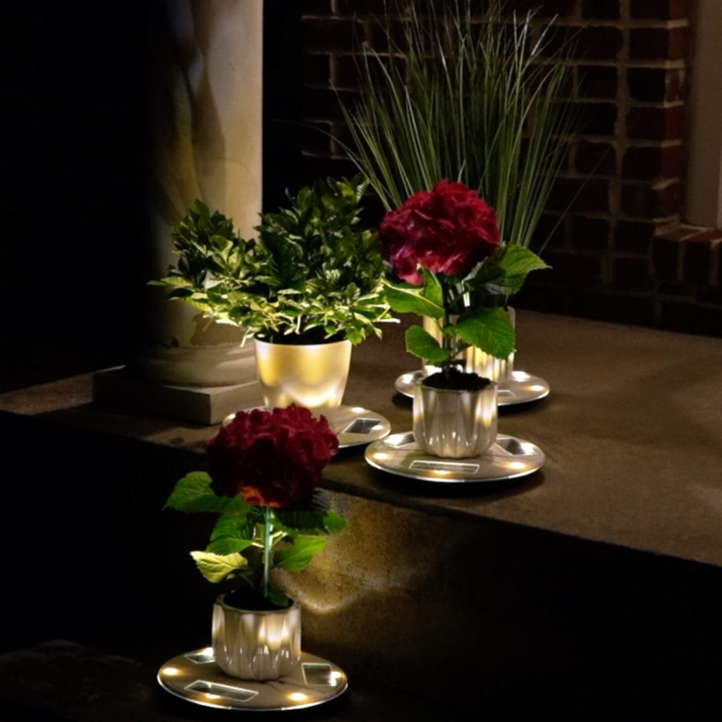 Solar Uplight Planter Base – Warm LED Accent for Pots, Planters & Outdoor Décor