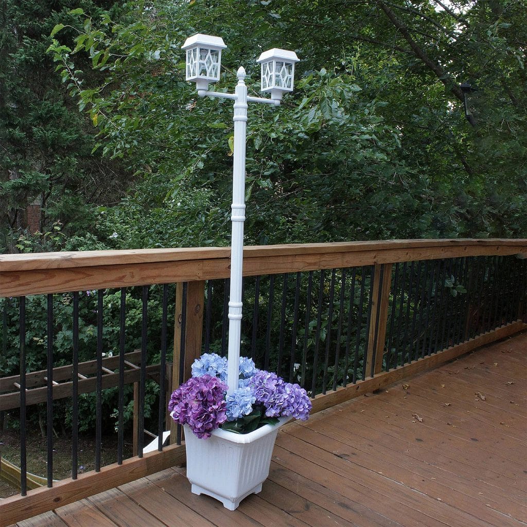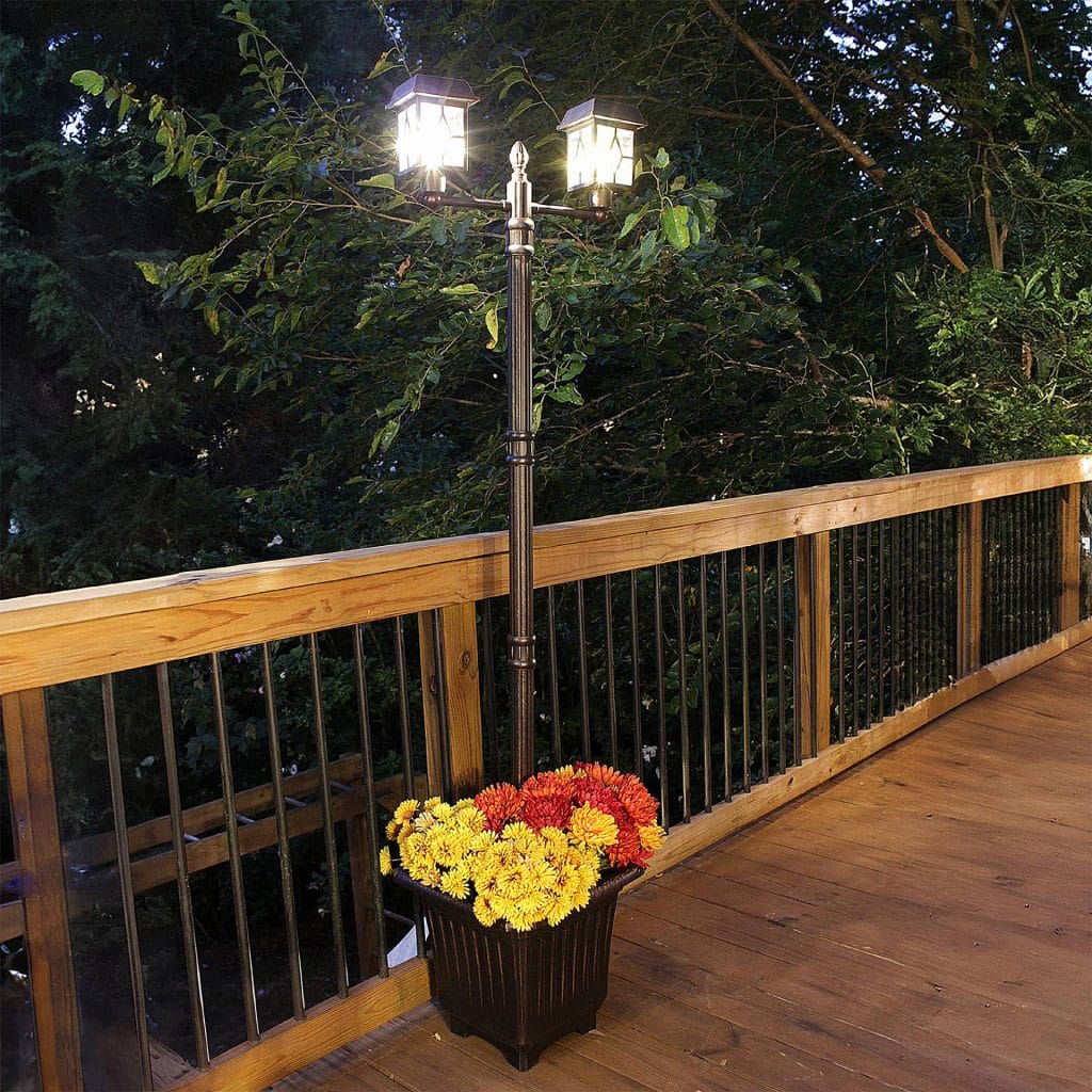 Luna II Solar Lamp Post with Planter – Decorative Dual LED Heads