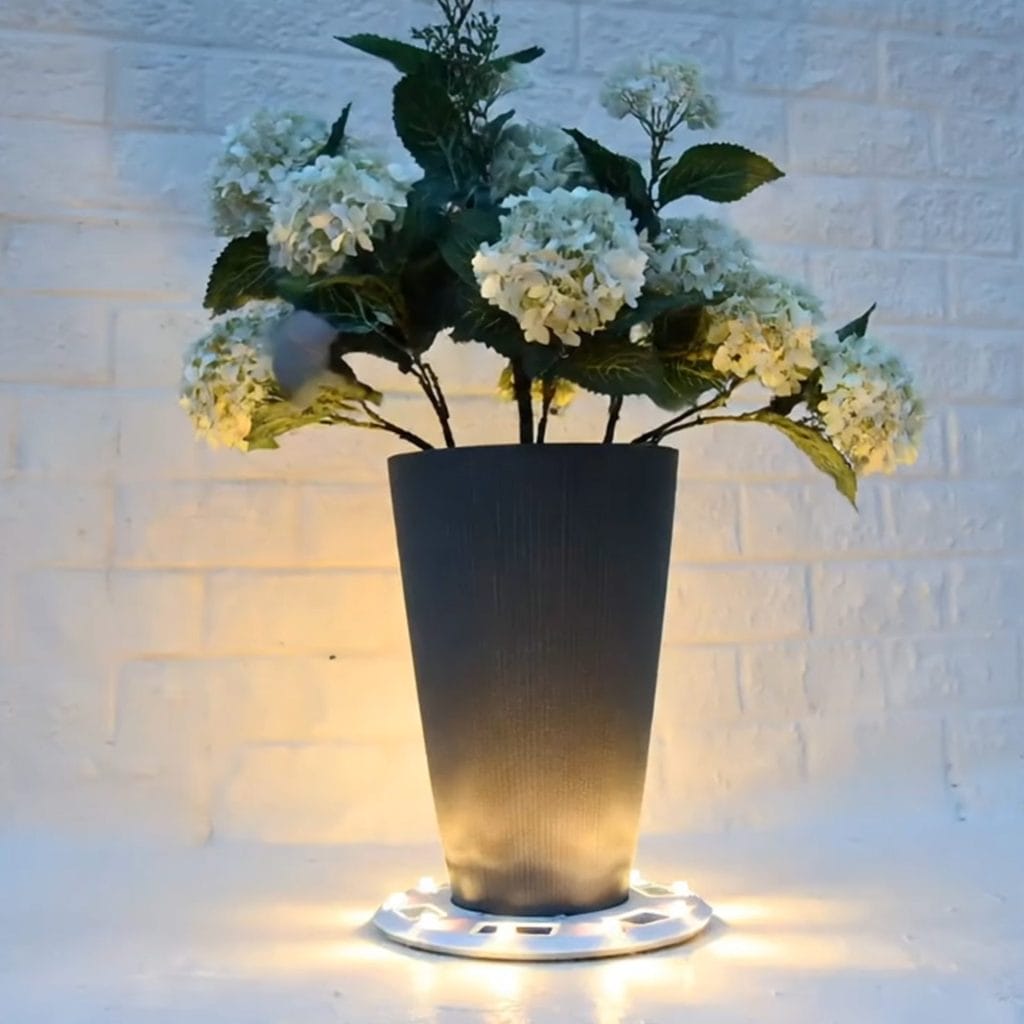 Grand Solar Uplight Planter Base: Decorative Solar Planter Light for Gardens, Decks & Entrances