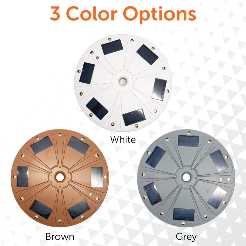 Bring your greenery to life after dark with the Gama Sonic 15″ Solar Uplight Planter Base, a larger version of our popular 10.5″ Solar Uplight Planter Base. This larger version provides a warm 60-lumen glow, illuminating planters, decorative accents, or garden features for added curb appeal. Ideal for patios, decks, entrances, and garden paths, this sleek decorative uplight transforms everyday foliage into glowing focal points, adding elegance and nighttime curb appeal. It blends seamlessly into your landscape while offering three finish options—white, grey, and brown—for maximum décor flexibility. Made from weather-resistant resin and powered by solar energy, it delivers effortless, automatic illumination for up to one night per full charge. Its durable, weather-resistant resin construction ensures it stands up to the elements—no wires, no maintenance, just dependable accent lighting.