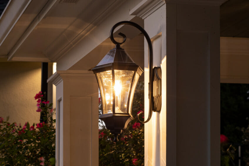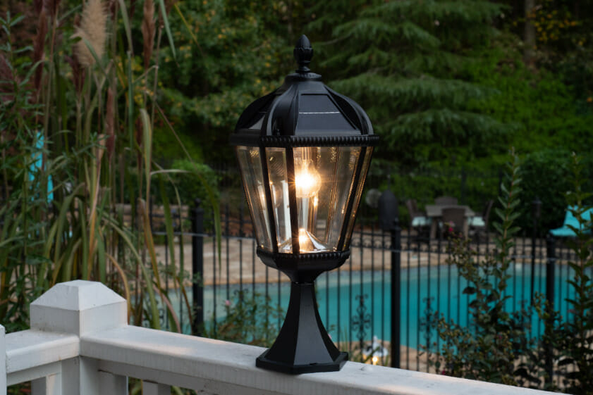 Lights near deck stairs, patios, or walls give the right amount of illumination to make your deck safer after dark. The Gama Sonic Solar Coach Light features a mix of industrial design and modern accent wall décor. This light fixture provides 360° illumination at dusk, and a warm white light for up to 12 hours when it’s fully charged. Elevate your outdoor space while also making it safe and secure.