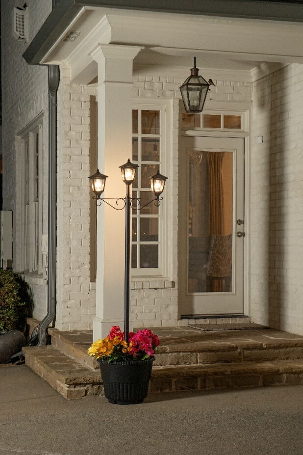 A post light for your patio is a great way to illuminate the surrounding areas and add a unique touch to your outdoor space. From a variety of styles to choose from, the Triple Head Solar Lamp and Post Set with Round Planter makes a perfect accessory, a classic look that adds curb appeal to your space with a weather-resistant structure. The warm white light lasts for up to 10 hours on a full charge, automatically turning on at dusk and off once the sun comes up. Perfect for DIY enthusiasts looking to upgrade their lighting.