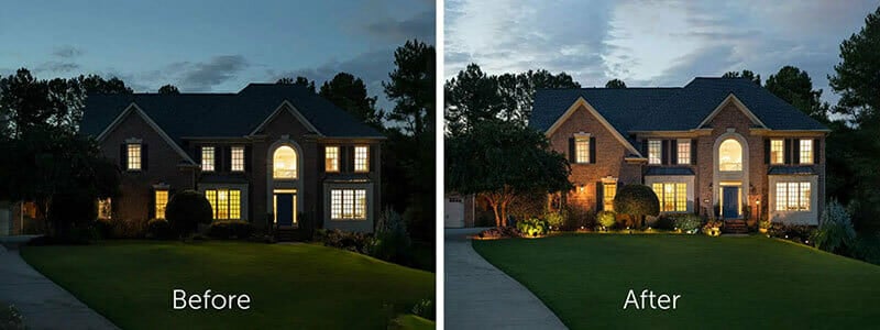 For our August Project of the Month, we are highlighting the upgrade of this North Atlanta home by adding outdoor solar post lights, solar garden and landscape lights, and solar security lighting, to their home. They wanted to control the outdoor look and feel of the exterior of their home with the use of outdoor solar lights, not mother nature. Get ready to explore how innovative outdoor solar lights enhanced this residential home into a captivating haven, radiating not just light but a whole new ambiance.