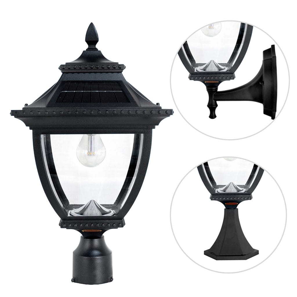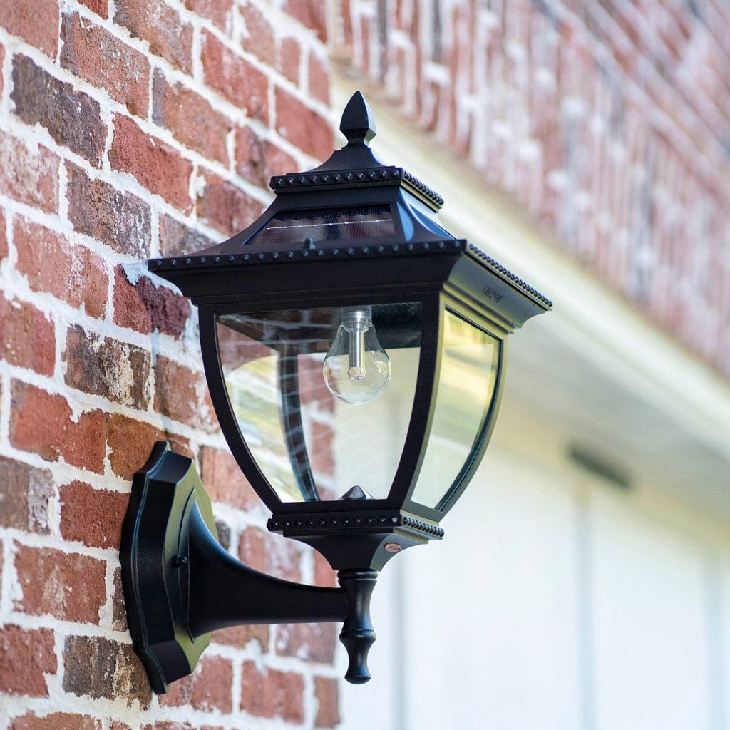 The Gama Sonic Plaza Solar Wall Light brings a vintage-inspired twist to modern outdoor decor. With its striking black finish and 180 lumens of bright, energy-efficient lighting, this fixture beautifully enhances the ambiance of your driveway or home entrance while providing reliable illumination. With Gama Sonic’s innovative Morph Technology, the solar panel is seamlessly integrated into the fixture, ensuring maximum sunlight absorption while maintaining a sleek and cohesive look. Crafted from durable ABS resin and featuring a weatherproof cast-aluminum mounting arm, it is built to withstand the elements year-round and is backed by our 5-year warranty. Perfect for adding character to your exterior walls, making it a great addition to farmhouse, cottage, or contemporary outdoor aesthetics.