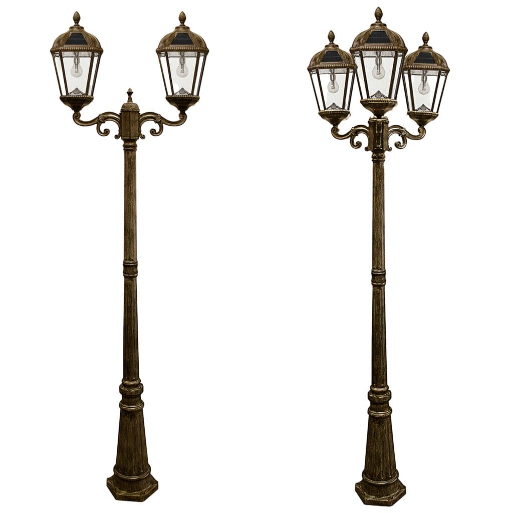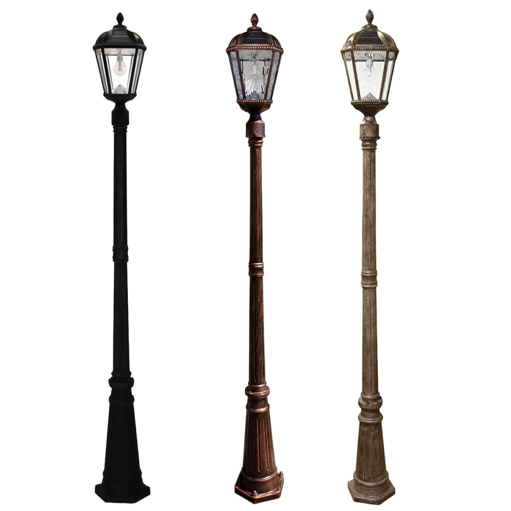 For larger areas like driveways, gardens, or walkways, the Royal Bulb Solar Single Lamp Post. offers classic design and enhanced lighting options. Available in Black, Brushed Bronze, and Weathered Bronze, the single lamp head emits 120 lumens.