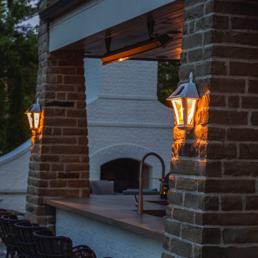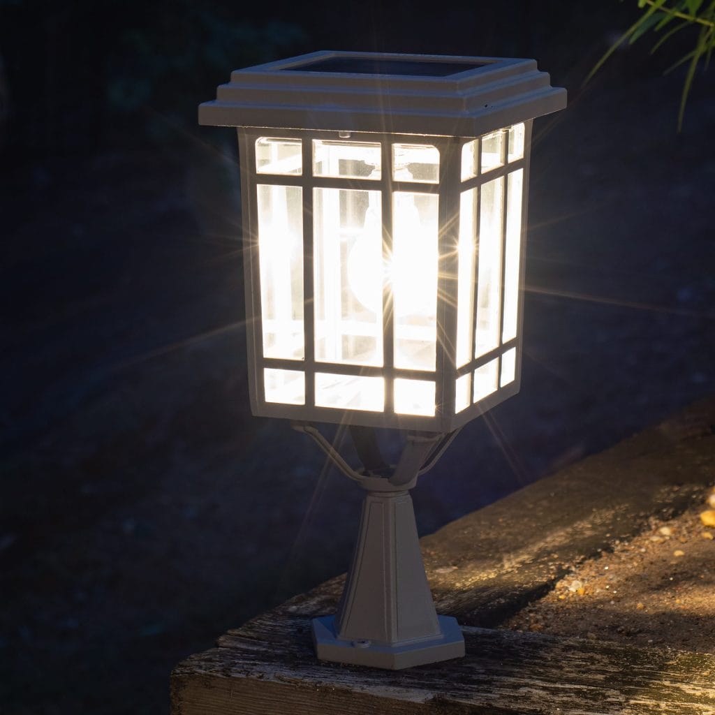 Whichever theme you choose, you can complete it by installing an outdoor solar light with a white frame finish. If you are trying to achieve a more sophisticated look, Gama Sonic recommends our Baytown II Sconce Solar Lamp . This light’s white frame and compact design will illuminate your backyard or patio with a warm white glow of 100 lumens.